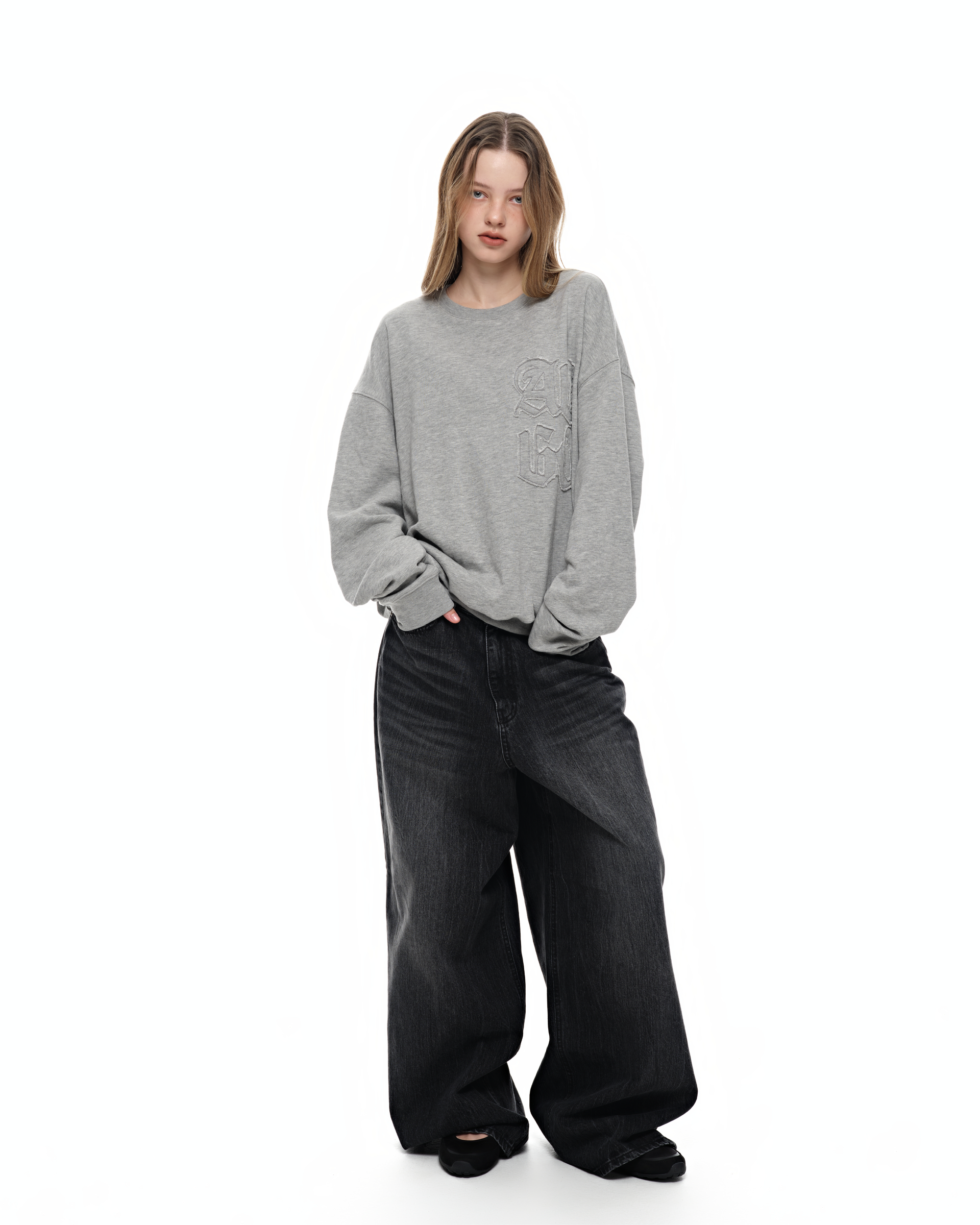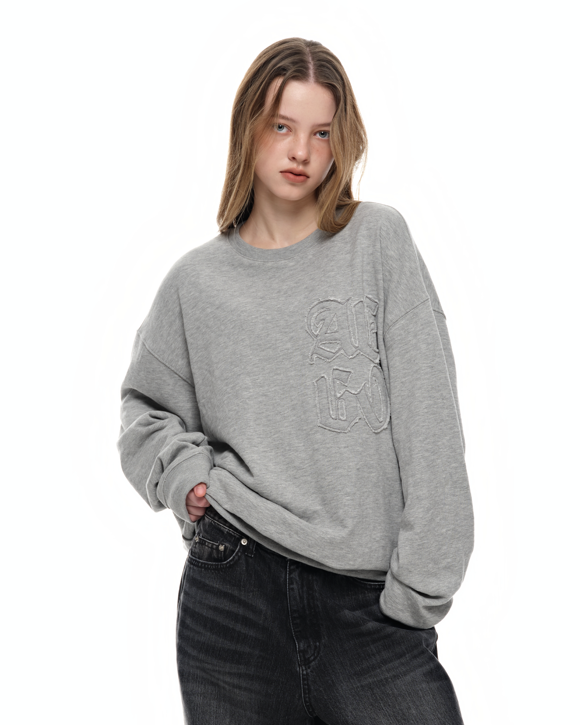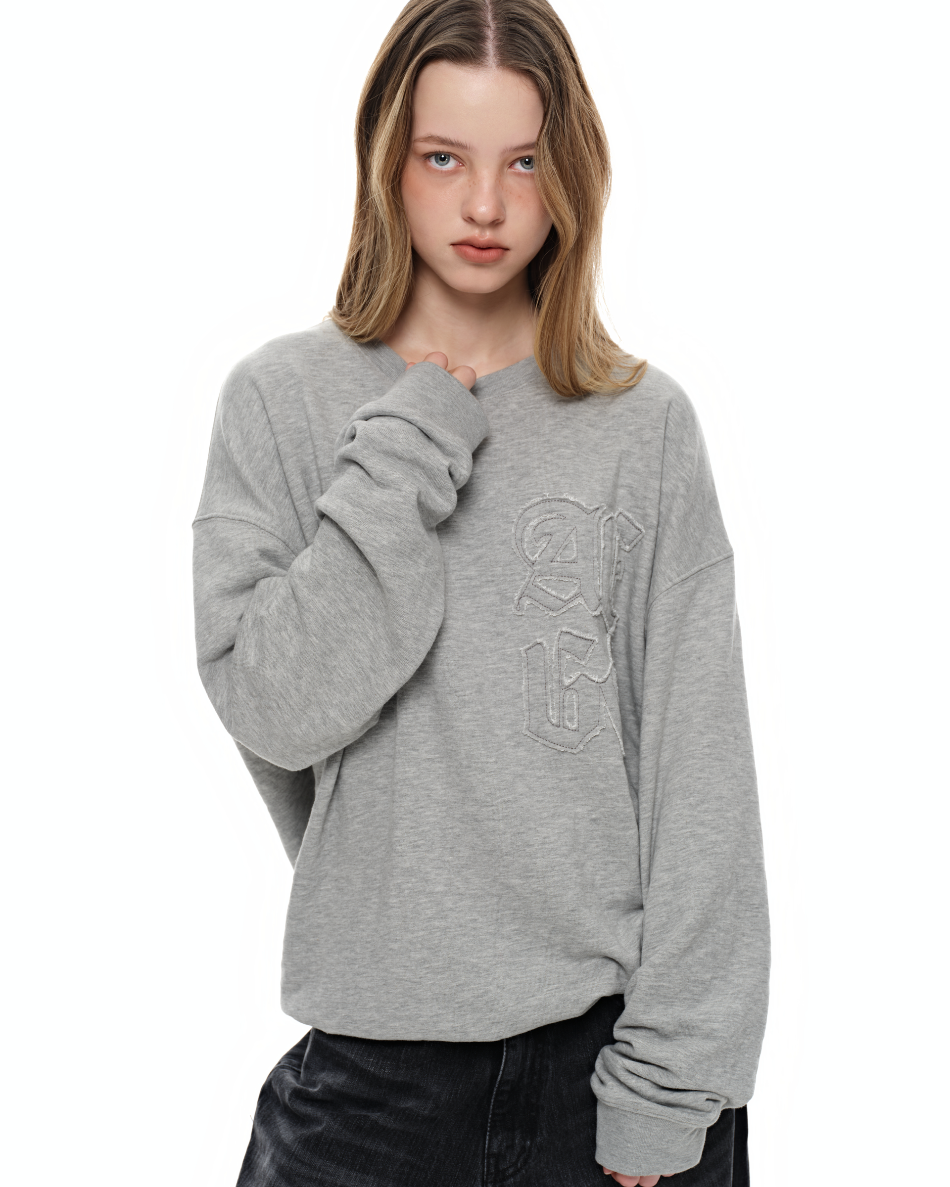 [2nd Re-order] Damaged patchwork sweatshirt_gray